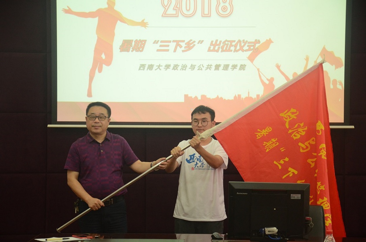 为确保2018年暑期“三下乡”活动顺利进行,真正发挥社会实践的作用, 7月13日上午,政治与公共管理学院于三教3201举行了“三下乡”动员会暨出征仪式。西南大学团委副书记张瑜、政治与公共管理学院党委书记李栋宣、院长吴江、院党委副书记刘东升、院团委书记肖颜以及院“三下乡”理论普及宣讲团全体成员出席了此次会议。